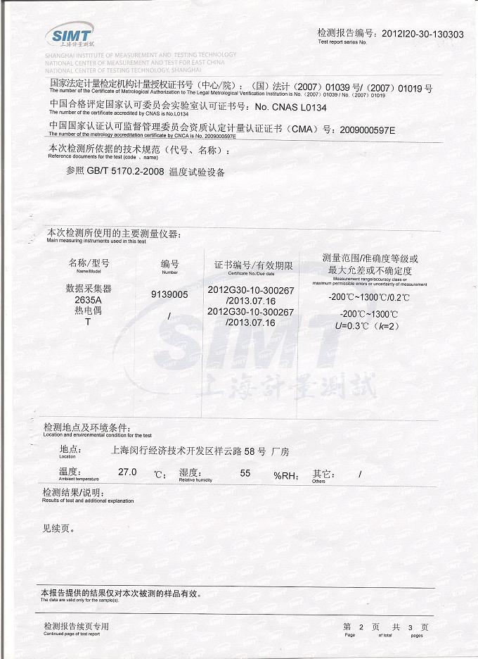 | >>高低溫試驗(yàn)箱檢測(cè)報(bào)告-上海計(jì)量院-勝利油田 |