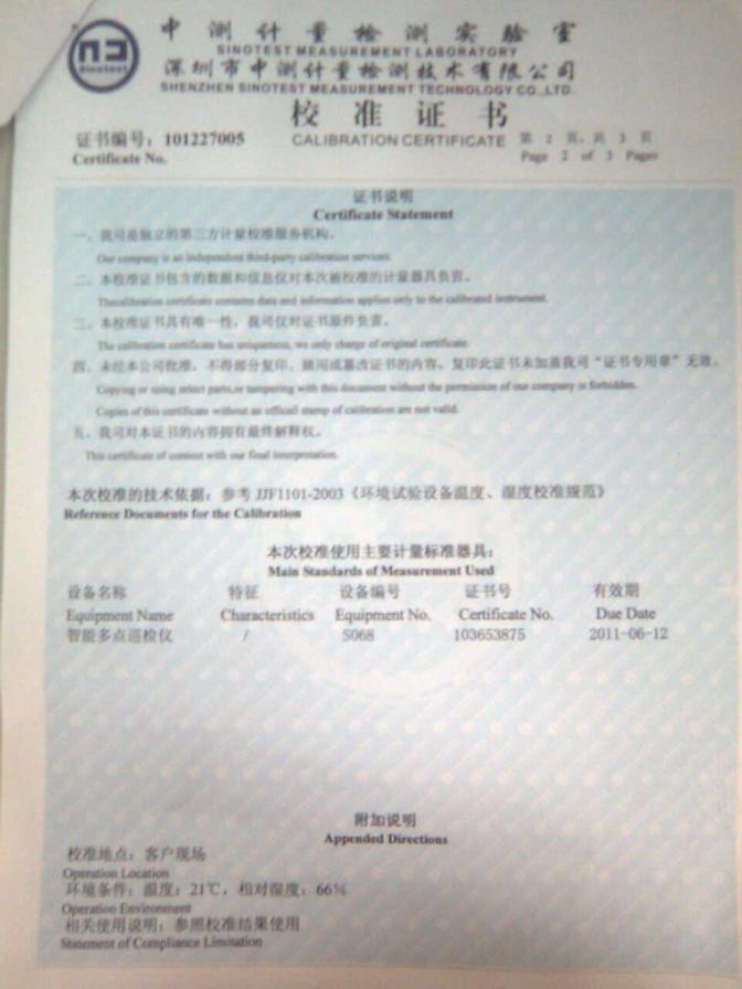 | 高低溫濕熱試驗(yàn)箱校準(zhǔn)證書-深圳中測(cè)計(jì)量-深圳精銳通 |