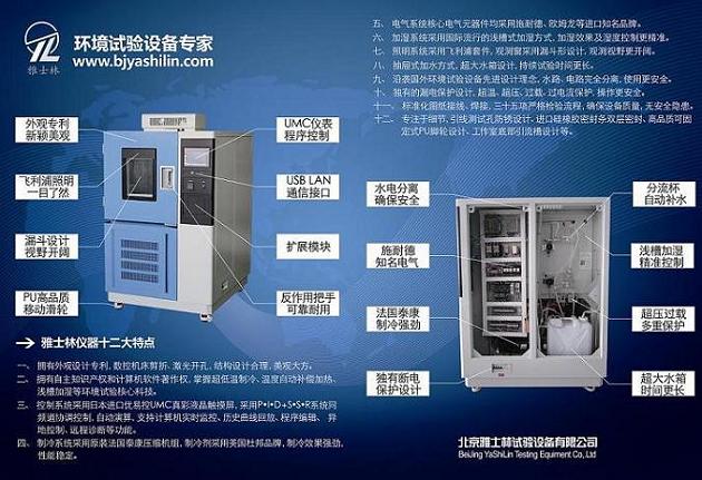 寶劍鋒從磨礪出,梅花香自苦寒來。雅士林儀器持續(xù)創(chuàng)新,開發(fā)最前沿的測試技術(shù),使雅士林的產(chǎn)品肯有更加大的生命力。雅士林儀器定位于中高端客戶群,高品質(zhì)、高性能高低溫交變濕熱試驗箱系列的產(chǎn)品特點: 1、擁有外觀設計專利,數(shù)控機床剪折、激光開孔,結(jié)構(gòu)設計合理,新穎美觀。 2、擁有自主知識產(chǎn)權(quán)和計算機軟件著作權(quán),掌握超低溫制冷、溫度自動補償加熱、淺槽加濕等環(huán)境試驗核心科技。 3、控制系統(tǒng)采用日本進口優(yōu)易控UMC系列7英寸高清真彩液晶觸摸顯示屏,溫度控制采用P•I•D+S•S•R系統(tǒng)同頻道協(xié)調(diào)控制,自動演算的功能,支持電腦實時監(jiān)控、歷史曲線回放、程序編輯、遠程診斷等功能。 4、制冷系統(tǒng)采用原裝法國泰康壓縮機組,制冷劑采用美國杜邦品牌,制冷效果強勁,性能穩(wěn)定。 5、電氣系統(tǒng)核心電氣元器件均采用施耐德、歐姆龍等進口知名品牌。 6、加濕系統(tǒng)采用國際流行的淺槽式加濕方式,加濕效果及濕度控制更精準。 7、照明系統(tǒng)采用飛利浦套件,觀測窗采用漏斗形設計,觀測視野更開闊。 8、抽屜式加水方式,超大水箱設計,持續(xù)試驗時間更長。 9、沿襲國外環(huán)境試驗設備先進設計理念,水路、電路完全分離,使用更安全。 10、獨有的漏電保護設計,超溫、超壓、過載、過電流保護,操作更安全。 11、標準化圖紙接線、焊接,三十五項嚴格檢驗流程,確保設備質(zhì)量,無安全隱患。 12、專注于細節(jié),引線測試孔防銹設計、進口硅橡膠密封條雙層密封、高品質(zhì)可固定式PU腳輪設計、工作室底部引流槽設計等。 全國免費服務電話:4006 400 998 |